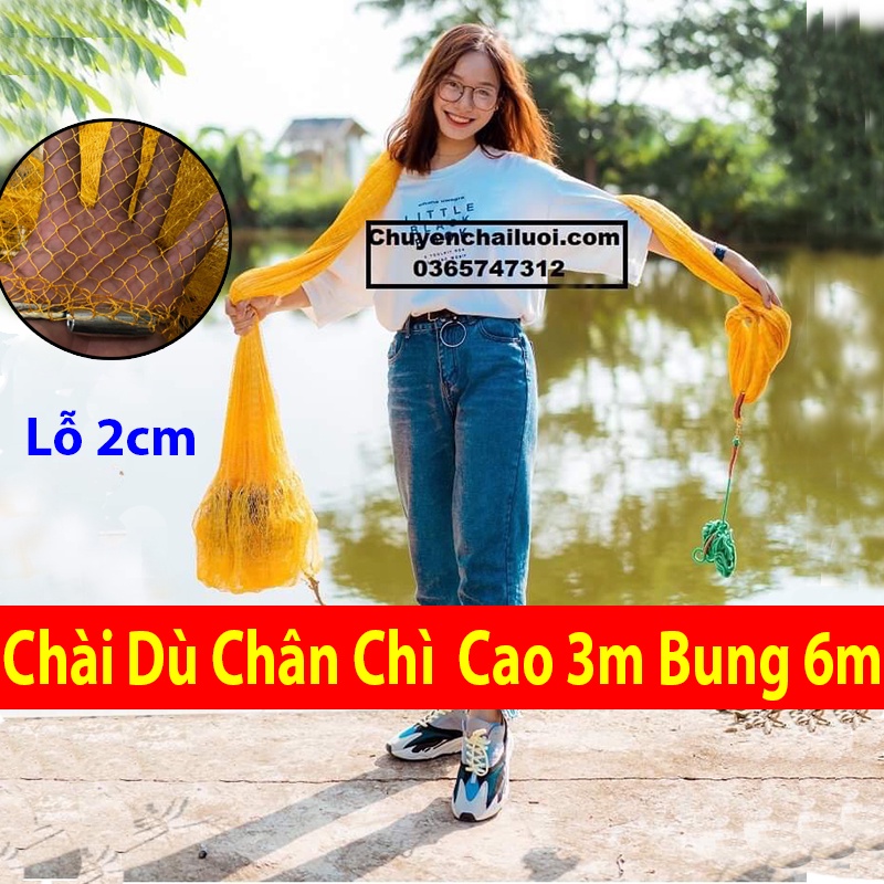[Chài Bắt Cá] Chài Đánh Cá Truyền Thống Bằng Dù Chân Chì Đúc - Cao 3m Bung 6m Mắt 2cm free ship